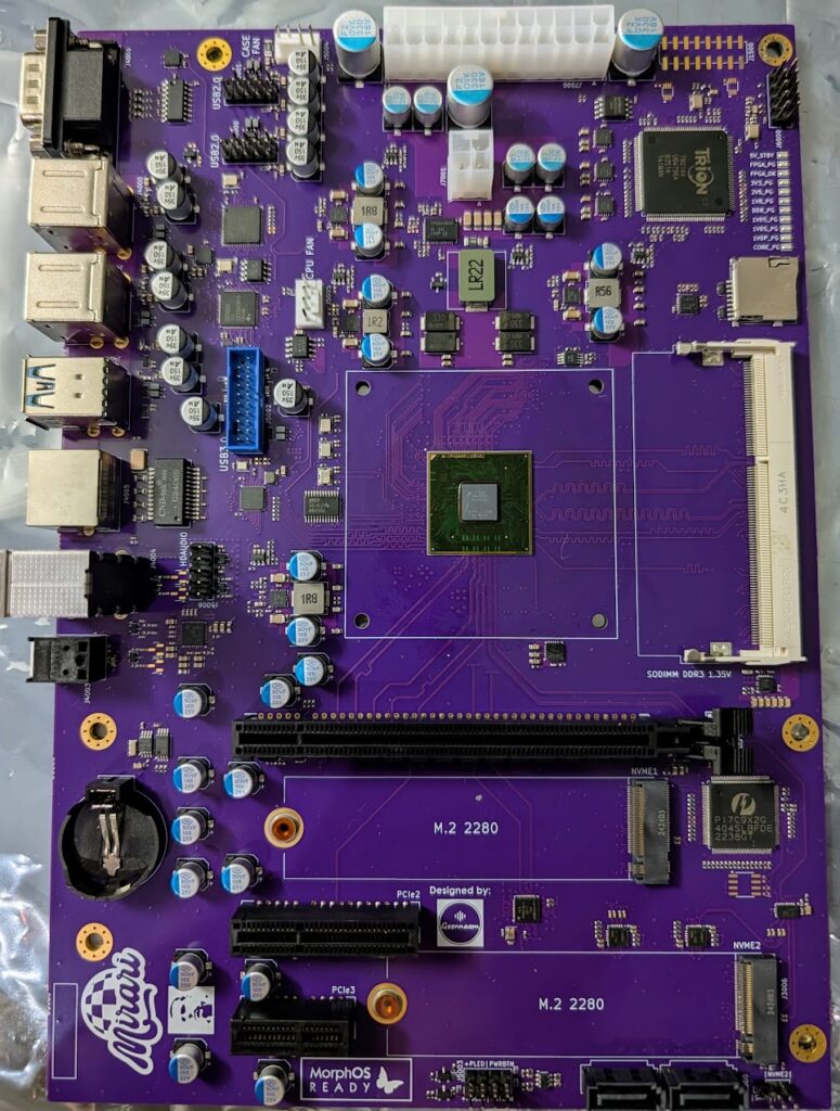 The Mirari Proto 2 board has landed in the Netherlands as expected on time. Harald took on the challenge of hand-soldering several key components that were unavailable at the factory. This included the PCIe x16 connector and the USB headers. Lets see if we can build a MorphOS capable system…
