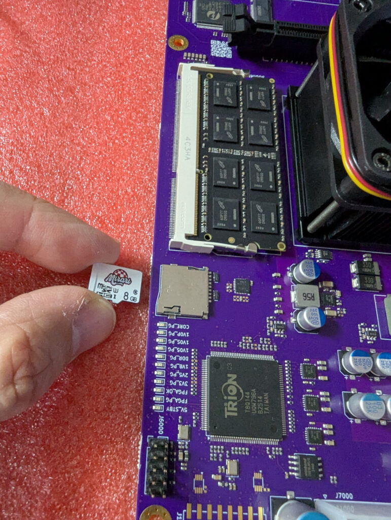 One of the Mirari boards has arrived at MorphOS team member Frank Mariak. Frank has started porting MorphOS to the Mirari board. Love it already !