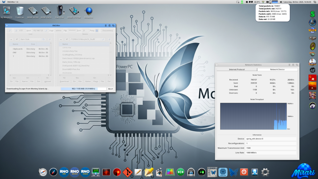 The MorphOS community is celebrating a significant victory! On December 5th 2025, developer Frank Mariak of the MorphOS team successfully completed and tested the Qoriq Network driver for the new Mirari mainboard.